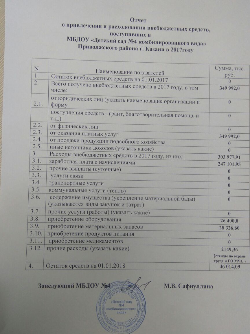 Отчет о привлечении и расходовании внебюджетных средств поступивших в 2017 году