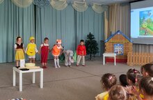 Были проведены беседы для детей на тему "Как вести себя в театре", знакомство с мультгероями и сказочными персонажами. Не обошла стороной ребят и постановка сказки “Колобок”. Дети совместно с музыкальными руководителями подготовились к представлению: учили роли, готовили костюмы. И вот наступил долгожданный день спектакля.