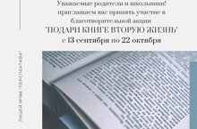 С 13 сентября по 22 октября в нашем лицее проходить благотворительная акция «Подари книге вторую жизнь». В рамках акции, ребята пополнили фонд нашей библиотеки 100 экземплярами книг научно-популярной и художественной литературы.