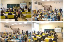 Традиционно очередной день детского оздоровительного лагеря открывала зажигательная физическая зарядка от наших неутомимых учителей начальной школы. Далее ребятам предстояло сразиться за шахматными столами в турнире по шашкам. Параллельно в классных кабинетах профессора «экспериментальной лаборатории» Дома занимательной науки и техники представили научно-познавательное шоу, во время которого дети погрузились в волшебный мир радостных научных открытий и опытов.