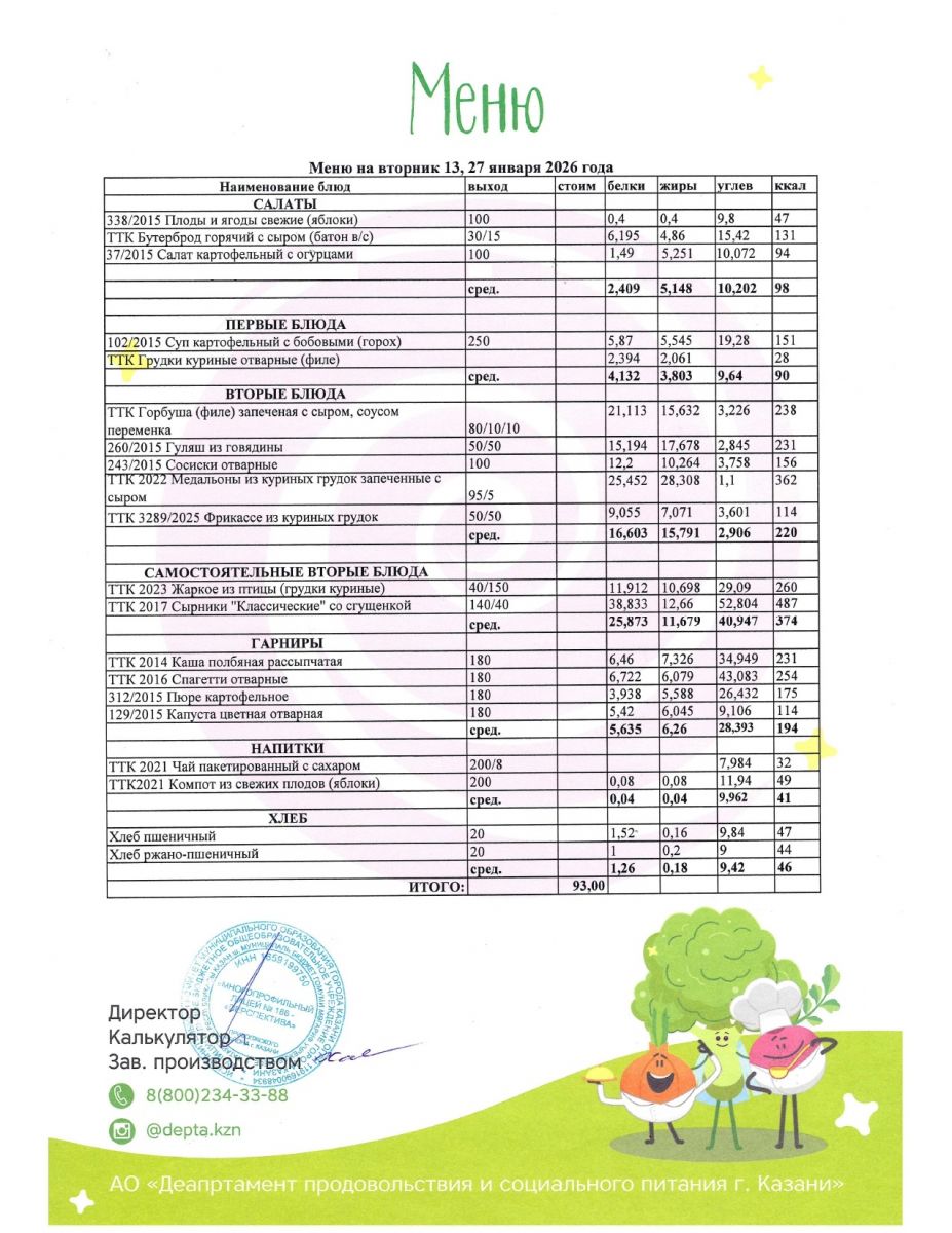 Организация горячего питания в общеобразовательном учреждении осуществляется: АО «Департамент продовольствия и социального питания г.Казани»