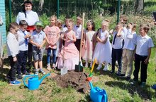 В нашем детском саду зародилась замечательная традиция: воспитанники подготовительных групп, прощаясь с детским садом, совместно с родителями, сажают яблоню. Это прекрасное подтверждение реализации в детском саду международной программы "Эко школа/Зеленый флаг". Мы надеемся, что яблони приживутся, в скором времени зашелестят густой листвой и порадуют сочными плодами.