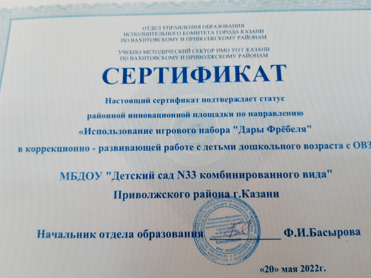 -Сертификат. Инновационная площадка по использованию Даров Фребеля в коррекционно-речевой работе с детьми ОВЗ. png