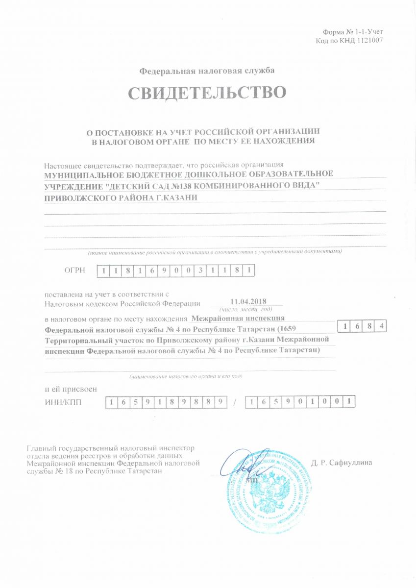 Устав МБДОУ "Детский сад №138 комбинированного вида" Приволжского района г. Казани