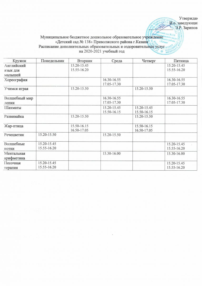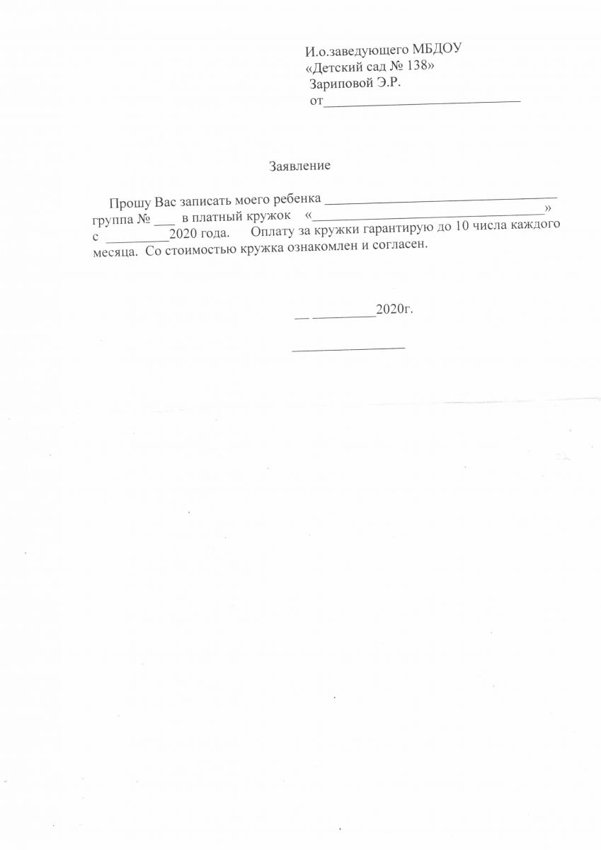 Прейскурант цен на оказание платных услуг МБДОУ "Детский сад №138" с 01.09.2020 года