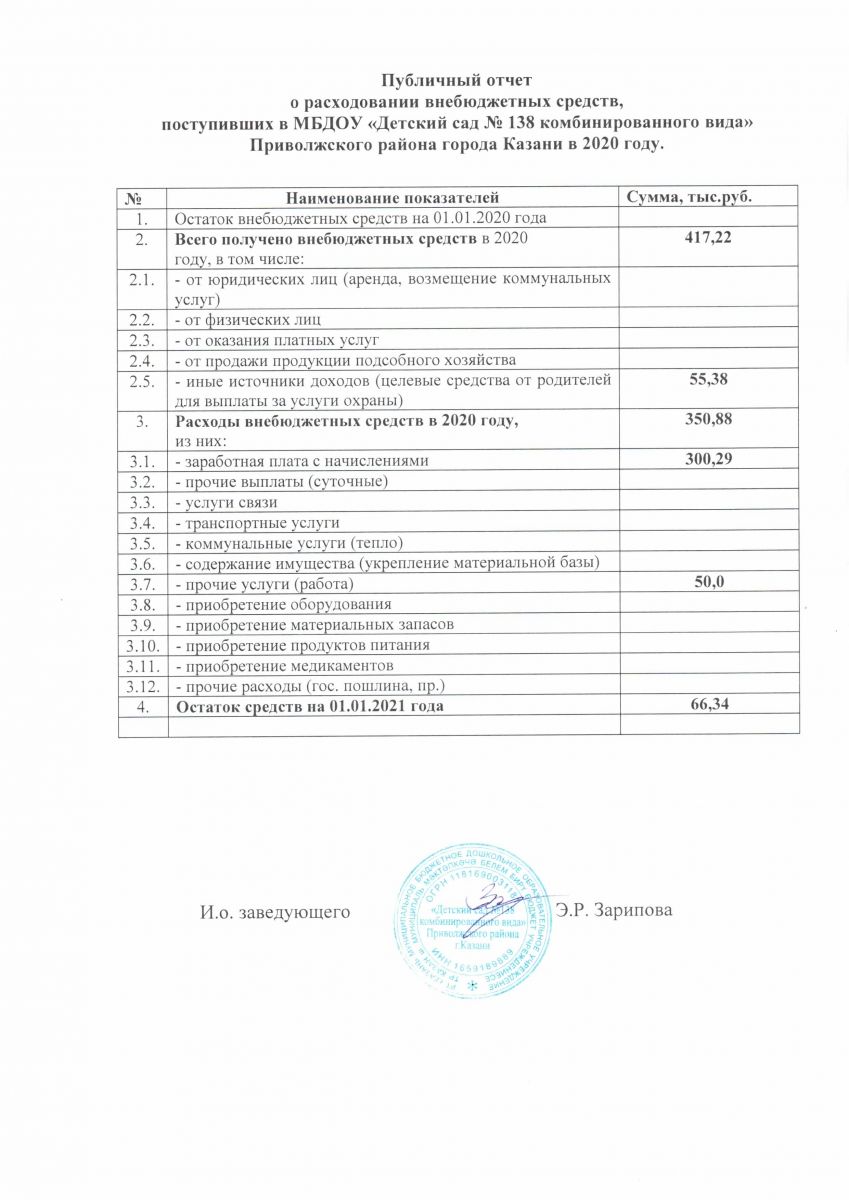 Отчёт о привлечении и расходовании внебюджетных средств за 2020 год