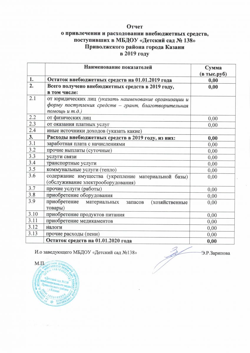 Отчёт о привлечении и расходовании внебюджетных средств за 2019 год