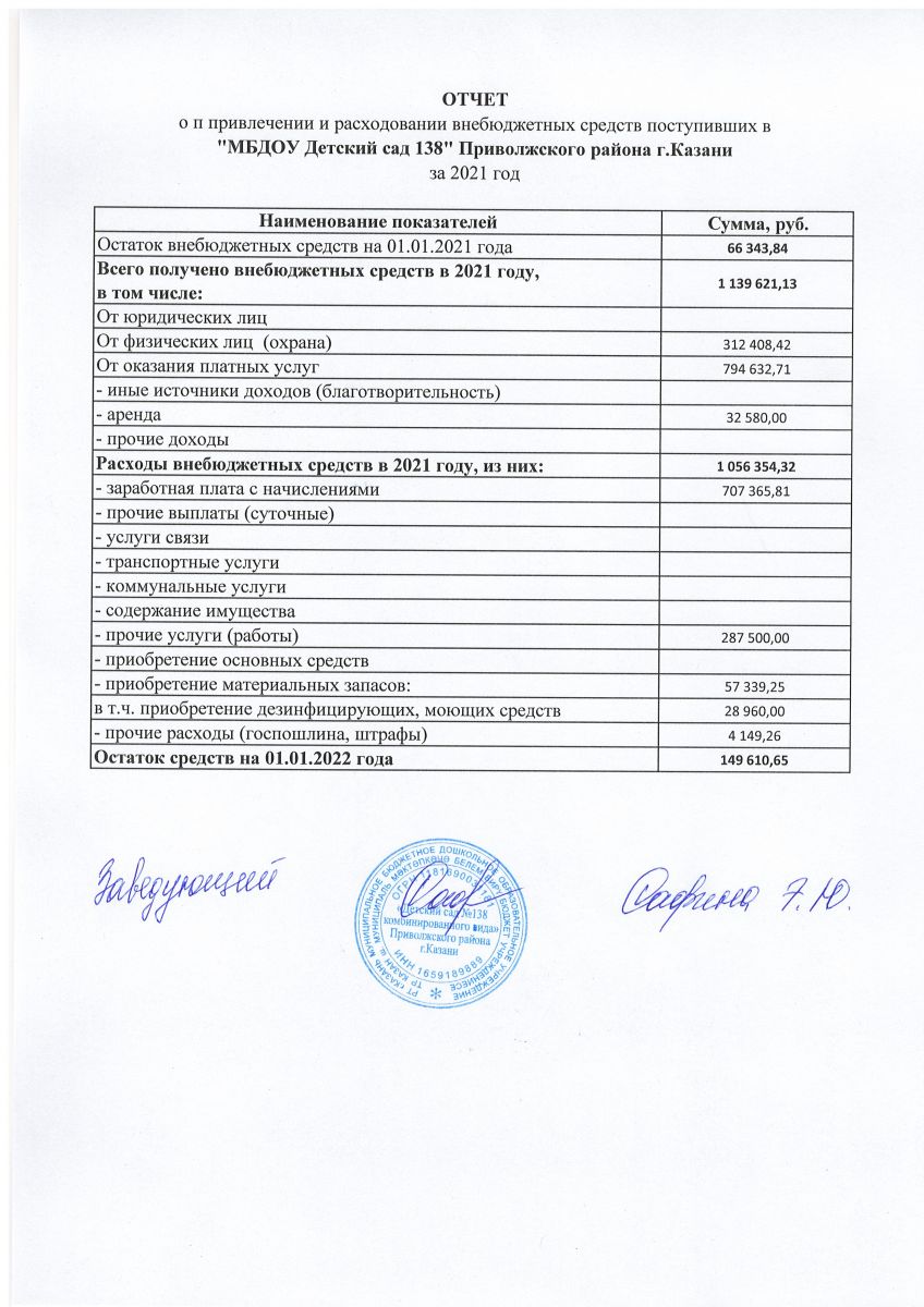 Отчет о привлечении и расходовании внебюдңетных средств за 2021 год