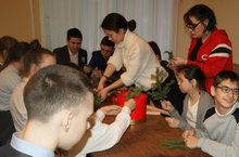 Волонтёры со старшими воспитанниками "Солнечного" собрали новогоднюю композицию, которой мы украсили холл центра. С большим удовольствием в работу включались родители и сотрудники центра