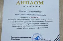 1 место заняла семья Акхяметдиновых в районном онлайн-конкурсе видеороликов по предупреждению детского дорожно-транспортного травматизма "Ребенок - главный пассажир" среди педагогов и родителей воспитанников ДОО Приволжского района г. Казани. Примите наши искренние поздравления!