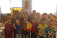 Воспитанники 1 группы и воспитатель Вильданова А.М. сделали коллективную работу ко Дню знаний