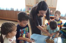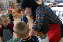 Еще одна встреча с нашими любимыми родителями средней группы №1, которые рассказали нашим воспитанникам "Песочную историю". Малыши смогли создать простейшие рисуноки, рисуя пальчиками по равномерно насыпанному слою. При этом, чтобы изменить рисунок не нужно ни ластика, ни нового листа, достаточно просто стряхнуть или провести пальчиком по песку.