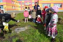 Всем детским садам нашего района были выделены сосны для озеленения участков. Мы с радостью приняли такой подарок,так как мы - новостройка,и тем более он совпал с нашей акцией "Посади дерево"