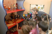 Ребята старшей группы посетили наш мини - музей в кабинете творческого развития. Ребята сегодня узнали, что такое - эспонат, композиция, предметы искусства. Ознакомились с правилами поведения в музеях.