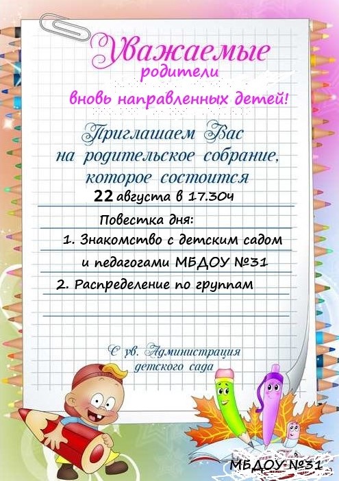 Общее родительское собрание для вновь поступивших детей!