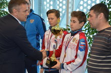Состоялось награждение чемпионов Командного Первенства России по теннису, проходившего с 13-18 марта в г.Тольятти – Арсения Хохлова и Дмитрия Долженкова! Вице- президент Федерации тенниса РТ Афанасьев Виталий Дмитриевич выразил слова благодарности спортсменам и тренеру Костанову Александру Сергеевичу за защиту спортивной чести и достоинства Республики Татарстан. Хохлов Арсений является учеником 7 Г класса нашего Лицея. Поздравляем победителей и желаем дальнейших успехов в покорении спортивного Олимпа! -