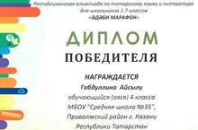 С 12 по 15 октября 2016 года центром республиканской олимпиады проводилась республиканская олимпиада по татарскому языку и литературе школьников 1-7 классов "Әдәби марафон". Ученица 4 В класса нашей щколы Габдуллина Айсылу стала победителем среди 200 участников и награждена дипломом I cтепени. Мы поздравляем Айсылу и её руководителя Сафину Кадрию Юлдузовну!