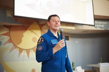 Казанские школьники встретились с космонавтом, героем России и кандидатом педагогических наук Сергеем Ревиным 19.04.2024