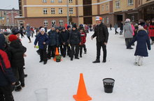 Ведущие праздника, ученики 8 класса Б зазывали народ на праздник. Смех, шутки, веселье, хороводы, песни звучали со всех сторон. Каждый мог поучаствовать в конкурсах и получить заслуженный приз. А конкурсы были очень интересные: кто перетягивал канат, кто метал метелку, силачи поднимали тянули нагружённые сани, шел бой подушками, малыши бегали на перегонки на одной лыже, а юные красавицы пытались перетанцевать друг друга.