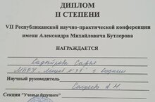 Поздравляем ученика 7Г класса Шакирова Джафара, который занял 2 место в XXX открытой городской научно-практической конференции учащихся "Мир науки". Умничка! Учитель - Хузиахметова Ирина Ильинична. Молодцы!