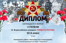 Поздравляем 10 А класс с победой в конкурсе «Гордость России». Они творчески подошли к оформлению учебного кабинета в рамках акции «Окна Победы».