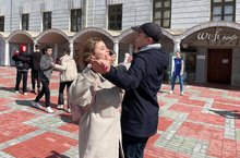 Даже холодная погода не мешает проводить флешмоб «Вальс Победы».В массовом вальсе участие приняли Дворнова Анастасия и Дедков Владислав -активисты движения «Волонтеры Победы», ученики 10 а класса .Почти каждый год ежегодному флешмобу не везет с погодой, но это никогда не мешало участникам акции с улыбками исполнять танец в память о подвиге советского народа. -