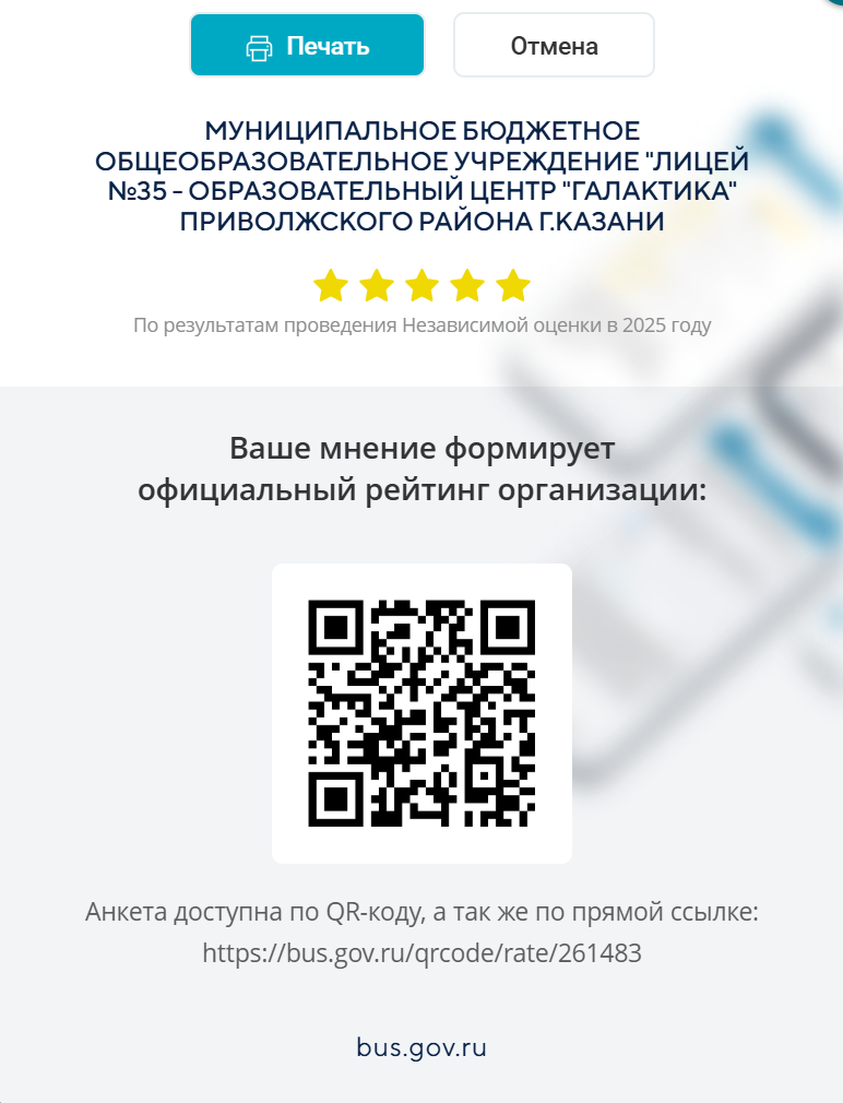 Муниципальное бюджетное общеобразовательное учреждение "Лицей №35 - образовательный центр "Галактика" Приволжского района г.Казани