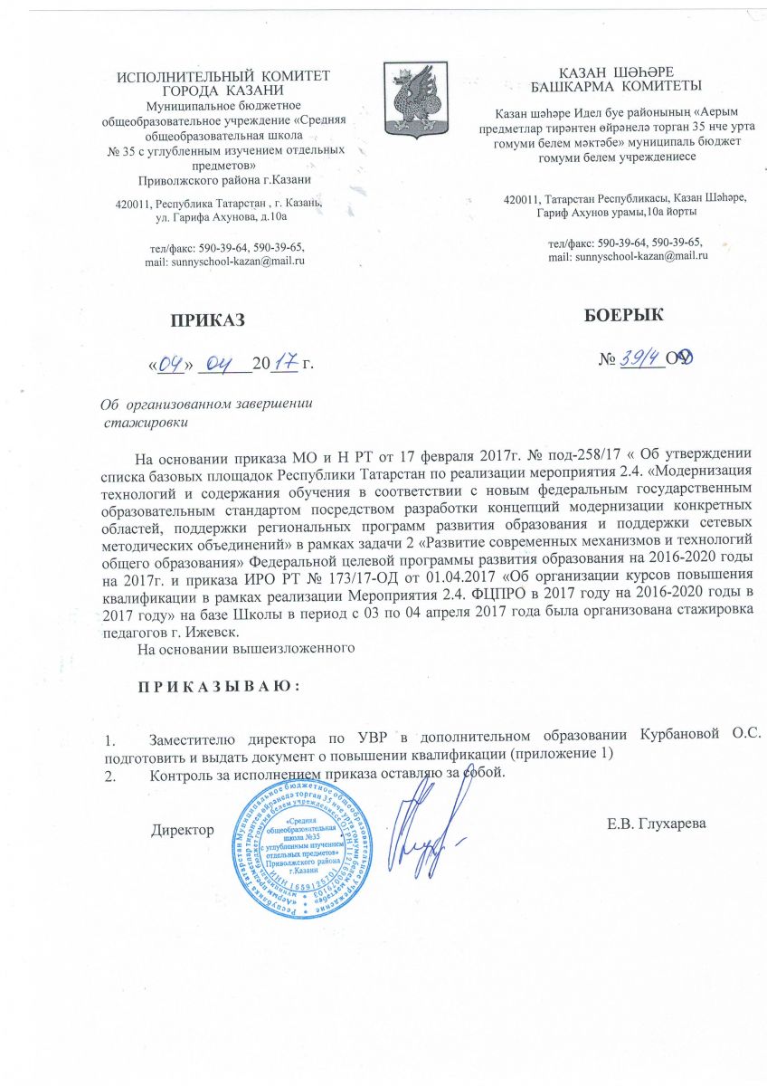 Муниципальное бюджетное общеобразовательное учреждение "Лицей №35 - образовательный центр "Галактика" Приволжского района г.Казани