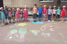В нашем детском саду сегодня прошёл тематический день «Я рисую лето». Нам кажется, что для рисования нужно усадить ребёнка за стол и создать для работы соответствующую обстановку. Но ведь лето в самом разгаре и сидеть в группе совсем не хочется, да и не нужно. Ведь рисовать можно не только на бумаге. Юные художники нашего детского сада это доказали. Ребята проявили своё творчество на прогулке – задорно и весело рисовали мелками. В своих работах дети выразили свои эмоции, настроение, отношение к чудесному времени года – лету. Рисунки получились яркими, весёлыми, а главное – добрыми. Творчество на свежем воздухе – это и весело, и полезно одновременно.