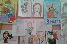 В рамках тематической недели, посвященный 8 Марта в детском саду проходит выставка детских рисунков "Моя мама".