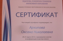 20-21 марта 2014 г. старший воспитатель Архипова Оксана Николаевна принимала участие в конференции и мастер-классе.