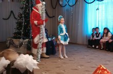 С 22 декабря 2014г. в нашем детском саду проходят новогодние утренники, которые дарят всем детям и гостям отличное настроение. Именно в Новый год мы верим в чудеса и сказку. Добрый Дед Мороз и Снегурочка порадовали детей и взрослых своими песнями и плясками. В конце каждого утренника дети получили подарок и поздравительную открытку от президента РТ - Р.Н.Миннеханова.