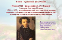 В преддверии праздника в нашем дошкольном учреждении прошли мероприятия, посвящённые Пушкинскому дню России.