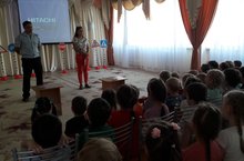 19 июля в нашем детском саду состоялась встреча детей старшей и подготовительной к школе группы с приглашением инспектора по пропаганде отделения по Кировскому району ОГИБДД УМВД России по г.Казани Фахрутдинова Марата Сагитовича и ведущего специалиста отдела профилактики территориального управления г.Казани Садриевой Зульфии Маратовны , которые провели профилактическую беседу о Правилах дорожного движения.
