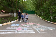 Работа по изучению правил безопасного поведения на дороге ведется в нашем детском саду круглый год. А это ребята нашего детского сада участвуют в конкурсе рисунков на асфальте на тему безопасного детства.