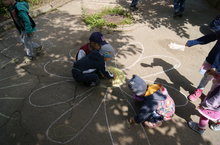 Наши детки поздравляют всех с этим замечательным праздником! И хотят подарить Всем замечательные рисунки на асфальте. Они нарисовали маму, папу, солнце, облака, символ этого праздника "Ромашку".