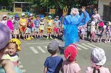 В нашем детском саду праздник проводился на улице. Детей ждал сказочный герой Карлсон, а также песни, танцы, игры.
