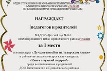 Коллектив педагогов и родителей стал победителем в номинации «Лучшее пособие на татарском языке» районного смотр-конкурса книг-самоделок «Книга – лучший подарок!» ДОО Вахитовского и Приволжского районов