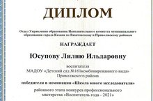 Поздравляем Лилию Ильдаровну с победой в номинации «Школа юного исследователя» профессионального конкурса "Воспитатель года"!