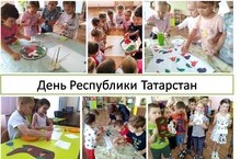 Ко Дню Республики Татарстан у нас прошли праздничные мероприятия под общим девизом: «Наш дивный край – Татарстан». Воспитанники детского сада расширили свои знания о государственной символике, о значении гимна. Дети узнали, что Государственный флаг поднимается во время торжественных мероприятий, праздников, и в это время всегда звучит гимн Российской Федерации и гимн Республики Татарстан. Во время познавательных бесед ребята вспомнили города нашей Республики, послушали удивительные звуки народных музыкальных инструментов, пели песни о Родине, играли в народные игры.