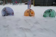 Воспитатель средней группы №1 Равилова Луиза Ринатовна организовала интересный мастер класс. Она с детьми изготовила ледяные шары. В фигуры поместили сухие цветы, листья, бусинки, игрушки, и украсили ими территорию детского сада.