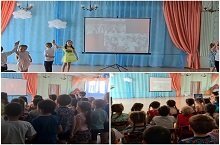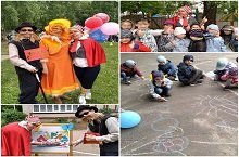 А потом к детям на праздник пришел Буратино, который принес хорошее настроение, добрую улыбку, поздравления и развлечения для детей. Буратино рассказал ребятам об истории праздника, загадывал интересные загадки для малышей, танцевал с детьми, играл в различные игры, вместе с детьми пел песни. Дети с удовольствием развлекались с Буратино, а в подарок прочитали ему стихи о лете и спели про него песню. Праздник закончился конкурсом рисунков на асфальте.