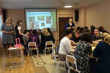 В завершении стажировки старшие воспитатели высшей квалификационной категории Насрутдинова Г.Х. и Ярусова Е.А. со слушателями провели деловую игру с использованием технологии "Мировое кафе",
