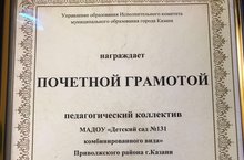 Поздравляем наш педагогический коллектив МАДОУ "Детский сад №131", победителя конкурса среди дошкольных образовательных учреждений Приволжского района г.Казани в номинации "Лучшее учреждение дошкольного образования г.Казани-2017"