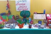 В нашем детском саду прошел экологический конкурс "Фантазии из фантиков" и "Вторая жизнь картона" В конкурсе приняли участие 156 семей. Оценивались по критериям: эстетическое восприятие, оригинальность замысла, художественная выразительность, творческая индивидуальность, аккуратность. Лучшие работы были выставлены на выставку, где дети могли полюбоваться ими, а так же с гордостью показать свои поделки, которые они выполняли вместе с мамами и папами.