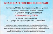 Муниципальное автономное дошкольное образовательное учреждение "Центр развития ребенка - детский сад № 383" Приволжского района г. Казани - новости