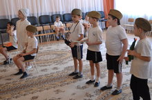 В процессе праздника дети не только пели, танцевали, учавствовали в спортивных состязаниях, но и как настоящие артисты представили театрализованную постановку "Мы солдатами растем".