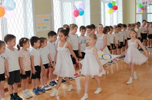 В этот осенний день ребята-школьники идут в школу. Начинается новый учебный год. В этот день и детский сад после лета встречает своих ребят.