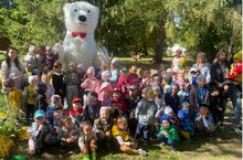 День знаний, как и любой праздник в детском саду очень радостный, яркий, веселый и торжественный. С самого утра сыпались поздравления, улыбки, звучала веселая музыка. К детям в гости пришли веселый Мишка, Чебурашка, Буратино