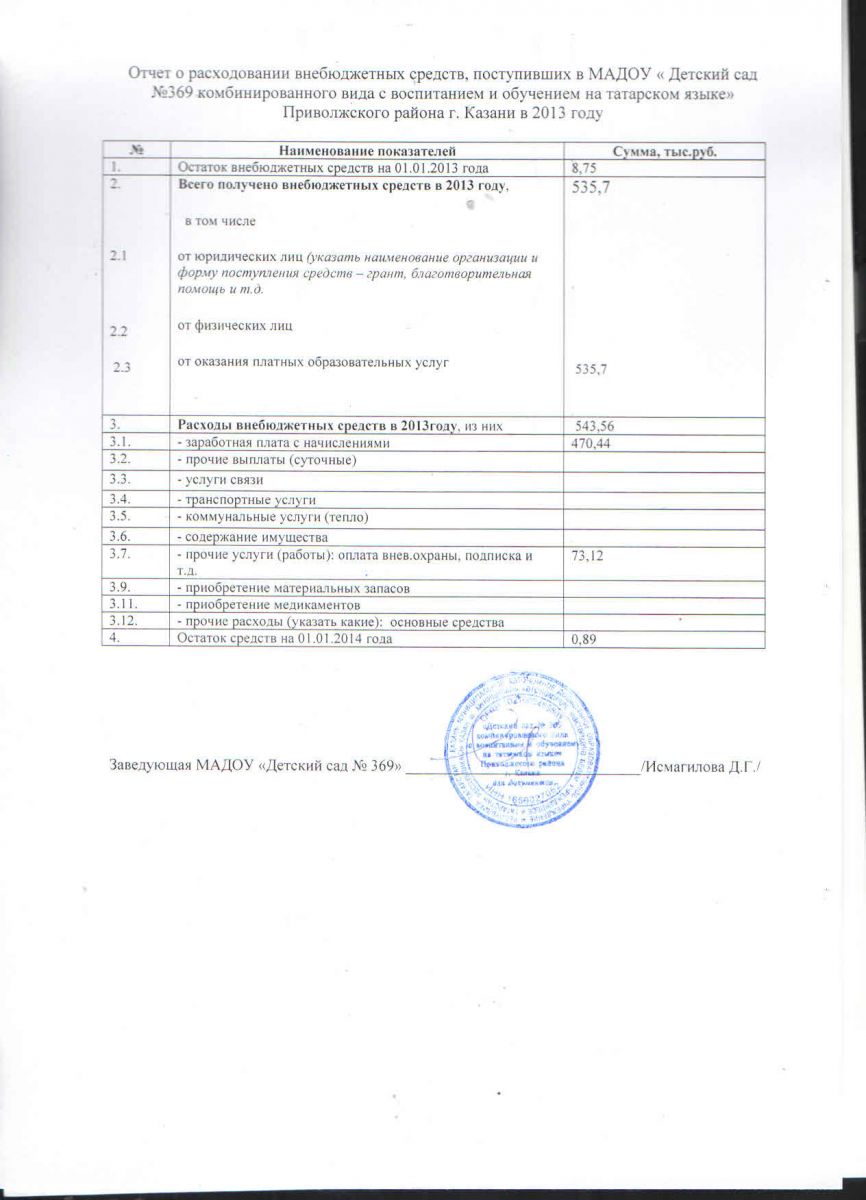 Отчет о привлечении и расходовании внебюджетных средств за 2013 год